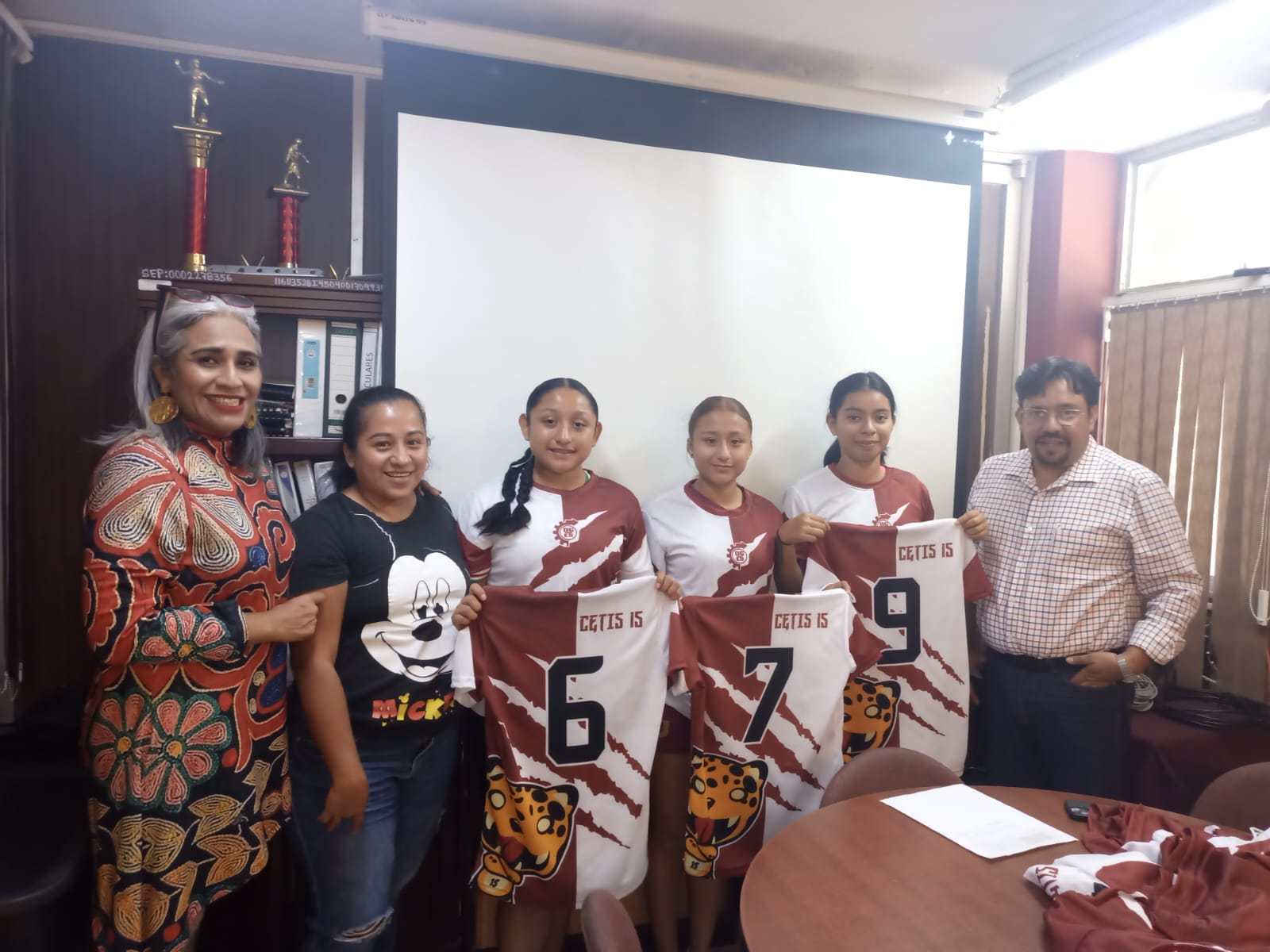 El director del CETis No. 15 Edgar Ponce Santiago hizo entrega de uniformes deportivos a las alumnas que proceden del CBTis No. 48 de Acayucan y forman parte de la selección de futbol femenil del plantel en calidad de refuerzo, aprovechando su estancia el director les invito una rica comida elaborada por el personal de la cafetería.