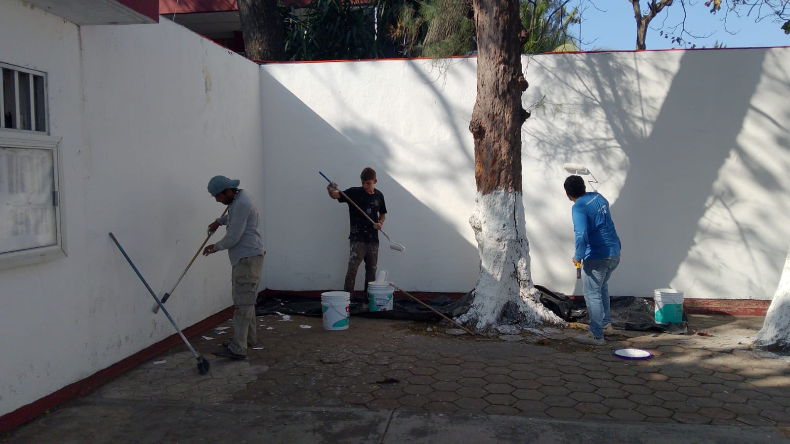 El Lic. Edgar Ponce Santiago director del CETis No. 15 supervisando que se esté trabajando en la rehabilitación de pintura de la barda perimetral.