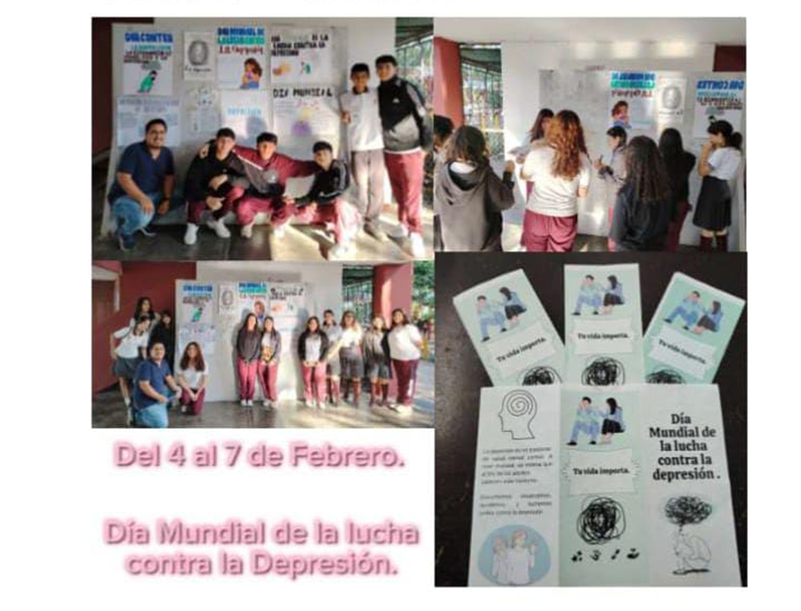 Los docentes: Ricardo Flores Miravete, Maribel Gracia y Dulce María Zamudio realizaron con los alumnos de sus grupos, realizaron carteles, repartieron trípticos y presentaron videos a los estudiantes, cuya idea principal es darles a conocer las señales de alerta de depresión que se presentan en los jóvenes, cómo podemos ayudar y si conocen con estos síntomas ser empáticos, apoyarlos y animarlos a buscar ayuda profesional.