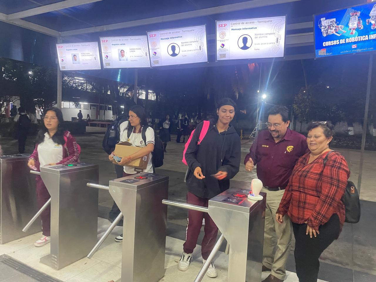 El director Edgar Ponce Santiago, despidiendo a los alumnos del turno vespertino, con el objetivo de ver que todo se lleve a cabo de manera tranquila y segura para el alumnado.