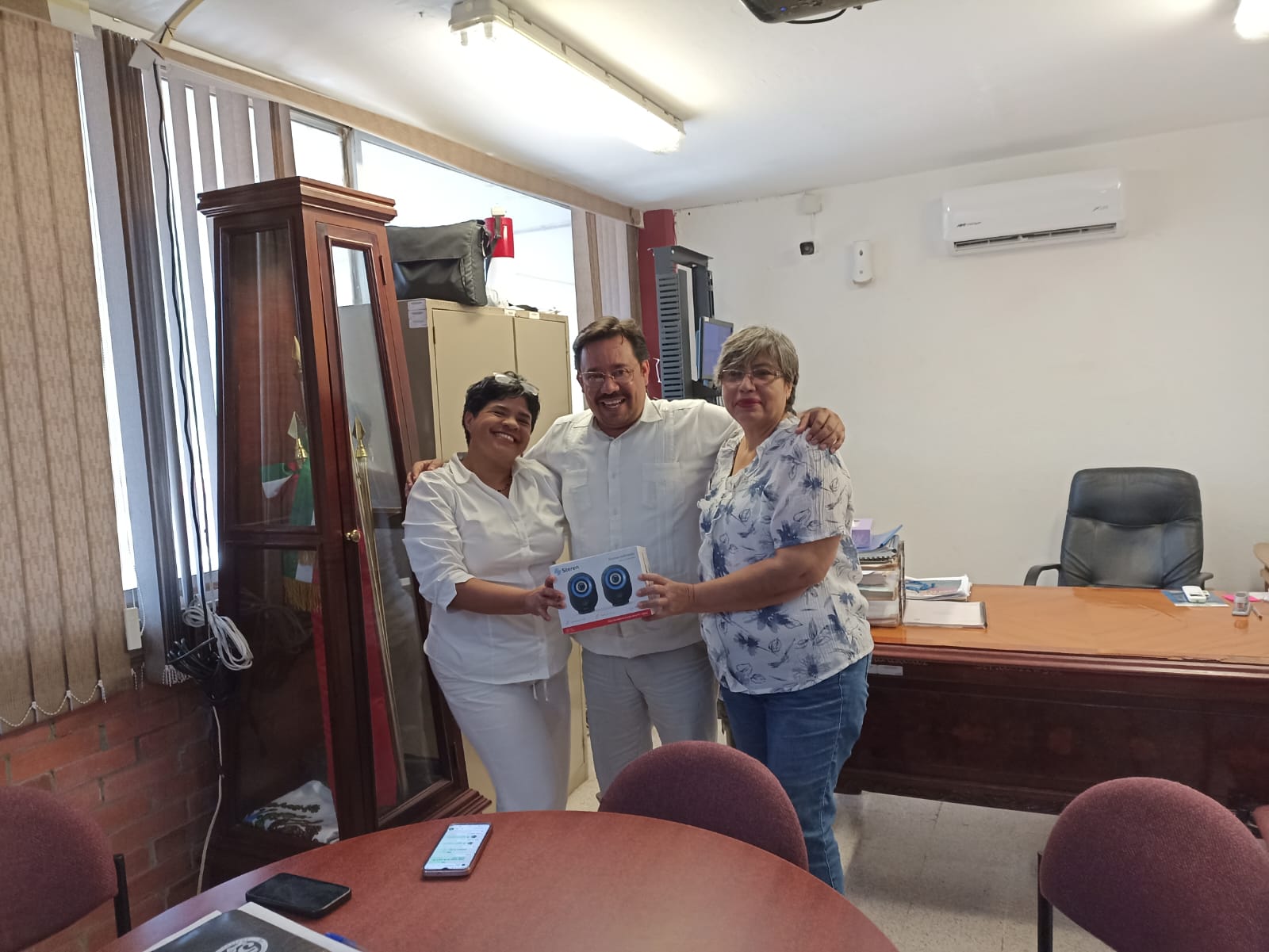 El director Edgar Ponce Santiago entrego un par de bocinas al personal de recepción, con el objetivo de seguir equipando de material, para que se sigan realizando las actividades con calidad y eficiencia.